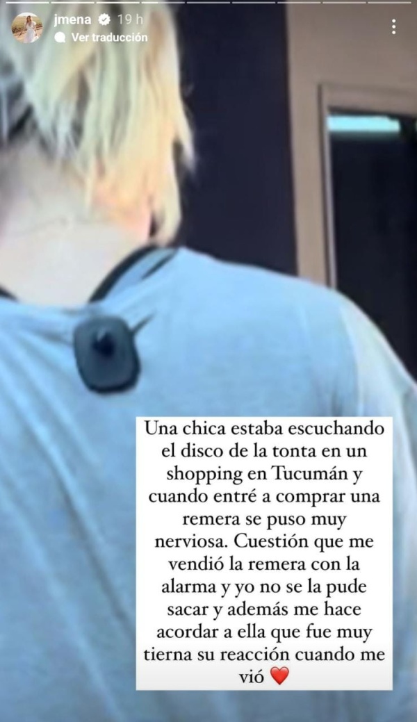 Y siguió: “Cuestión que me vendió la remera con la alarma y yo no se la pude sacar y además me hace acordar a ella, porque fue muy tierna su reacción cuando me vio”.