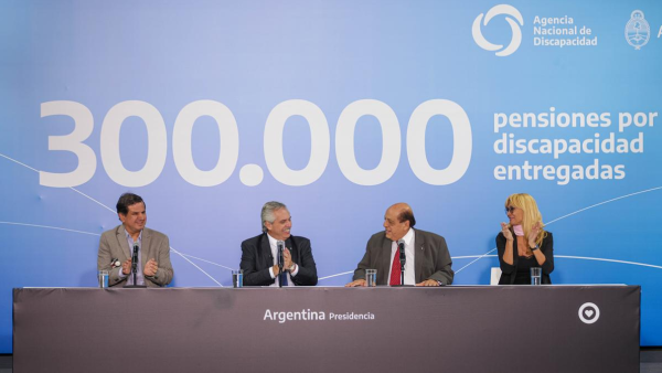 El presidente Alberto Fernández estuvo presente este miércoles en la entrega de 70 pensiones no contributivas por discapacidad en Berazategui. En este acto además se celebraron las 300.000 pensiones adjudicadas desde el inicio de su gestión.