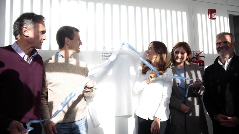 La ministra de Desarrollo Social de la Nación, Victoria Tolosa Paz inauguró un nuevo Centro de Desarrollo Infantil (CDI), ubicado en el barrio La Merced en San Vicente, acompañada del titular de la cartera de Obras Públicas de la Nación, Gabriel Katopodis y el intendente municipal, Nicolás Mantegazza.