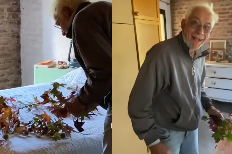 En ese sentido, obtuvo una gran repercusión en las redes sociales, el video de un joven que filmó a su nono, mientras decoraba con ramas y hojitas de colores la cama para recibir a su esposa que se había ido a pasear por unos días sin él.