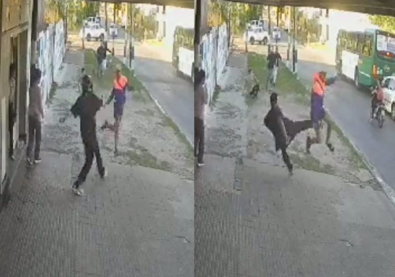 Un vecino pudo detener a un delincuente que estaba prófugo mediante una tremenda patada voladora para que la policía lo detenga.