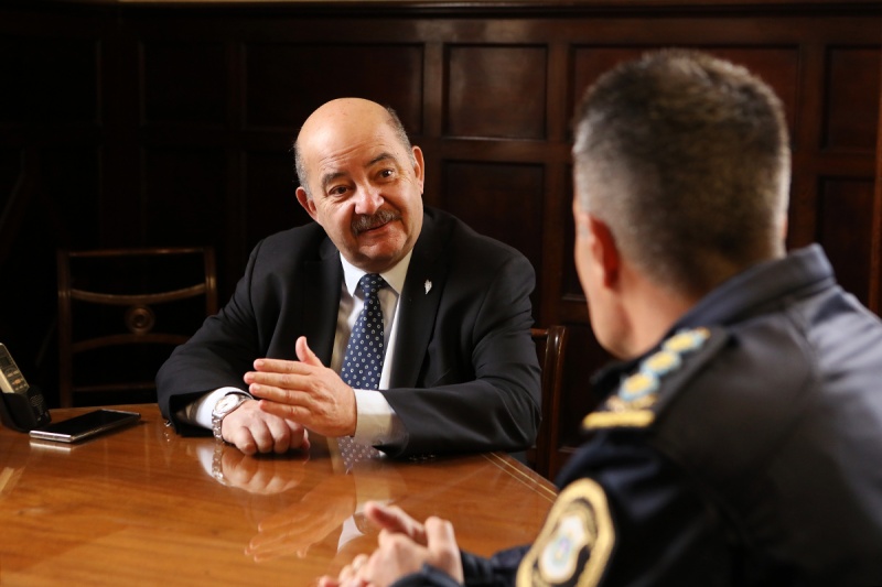 El vicepresidente de la Universidad Nacional de La Plata, Fernando Tauber, se reunió con el subjefe de la Policía bonaerense, Jorge Figini, para avanzar en forma conjunta en tareas de prevención del delito, con el objetivo de garantizar más y mejor seguridad para toda la comunidad universitaria. Del encuentro también participó Leonardo Cuello, director de Política y Estrategia de Prevención Universitaria.