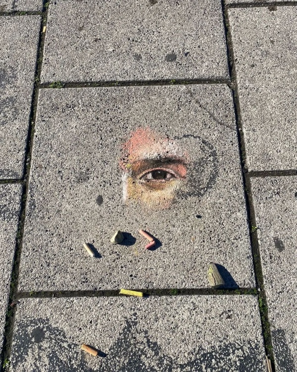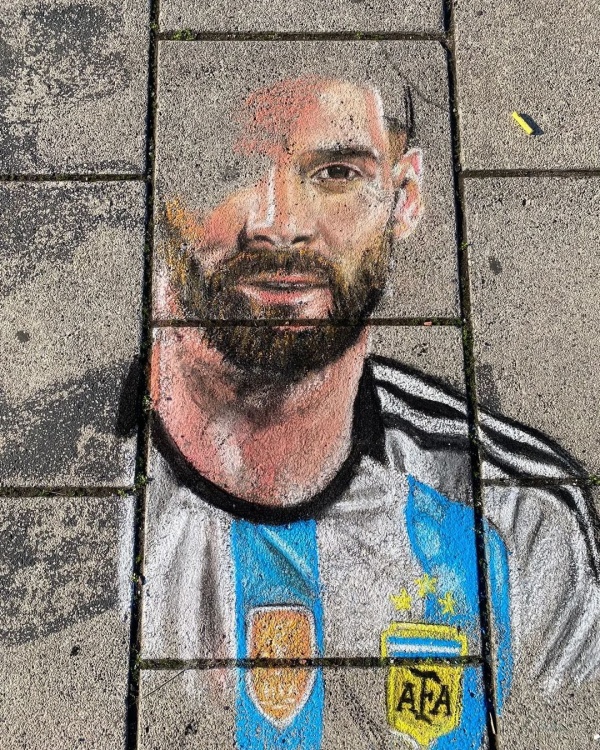 La figura de Lionel Messi que un artista recreó con tiza y carbón quedó grabada en Plaza Moreno el último domingo durante el Fan Fest organizado por el Municipio.