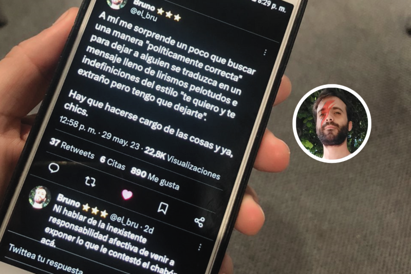 “A mí me sorprende un poco que buscar una manera ‘políticamente correcta’ para dejar a alguien, se traduzca en un mensaje lleno de lirismos pelotudos e indefiniciones del estilo ‘te quiero y te extraño pero tengo que dejarte’”, expresó el joven.