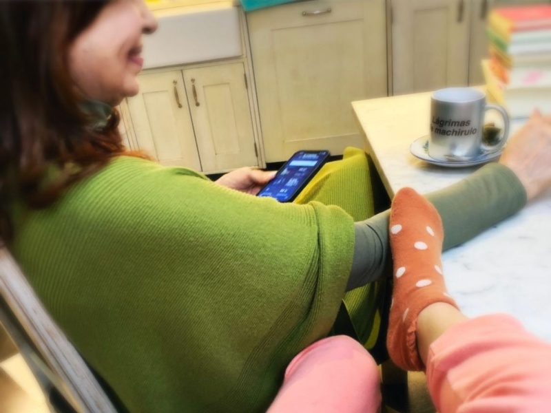 En la foto que compartió la hija de la vicepresidenta de la Nación, la niña posaba sus pies sobre la funcionaria, que se encontraba sonriendo y con el celular en su mano izquierda.