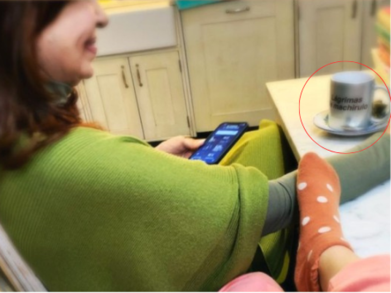 En la foto la niña posaba sus pies sobre la vicepresidenta, que se encontraba sonriendo y con el celular en su mano izquierda. Pero sobre la mesa, había una taza que llamó rápidamente la atención de los seguidores, debido a que llevaba la inscripción: "Lágrimas de machirulo".