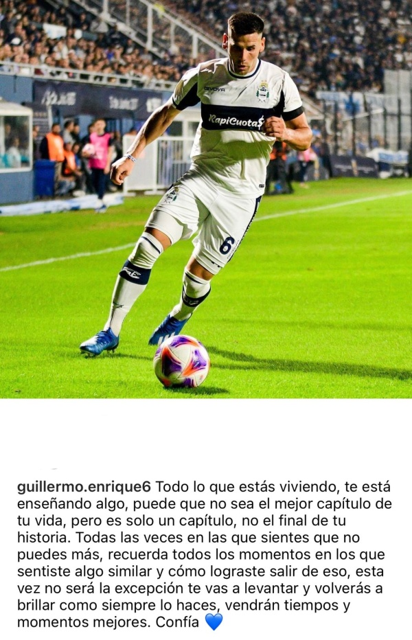 "Todo lo que estás viviendo, te está enseñando algo, puede que no sea el mejor capítulo de tu vida, pero es solo un capítulo, no el final de tu historia", comenzó diciendo, Guillermo Enrique, en un posteo realizado en su cuenta de Instagram. El correntino salió así al cruce de las distintas versiones que lo involucran, tras haber quedado desafectado del último partido ante Huracán. Ahora, por estos motivos, tampoco estará en consideración para jugar mañana con Central Córdoba.