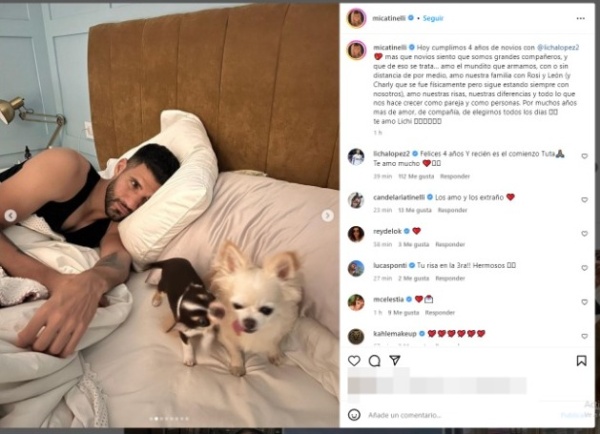 Este 22 de junio, Mica celebra su cuarto aniversario con el jugado Lisando 'Licha' López y decidió bajar la guardia dedicándole un sentido mensaje. "Hoy cumplimos 4 años de novios y más que novios, siento que somos grandes compañeros".