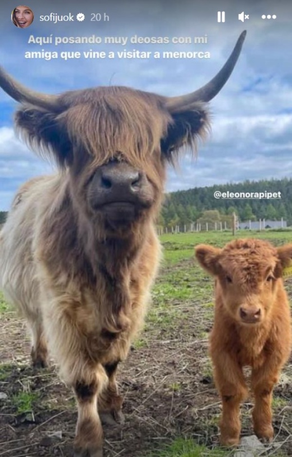 Sin embargo, Jujuy Jiménez sigue compartiendo sus emociones a través de su cuenta de Instagram. En la tarde del sábado publicó una foto de un animal con grandes cuernos, por lo que decidió reír y escribir: “Aquí posando muy deosas con mi amiga que vine a visitar a Menorca”.