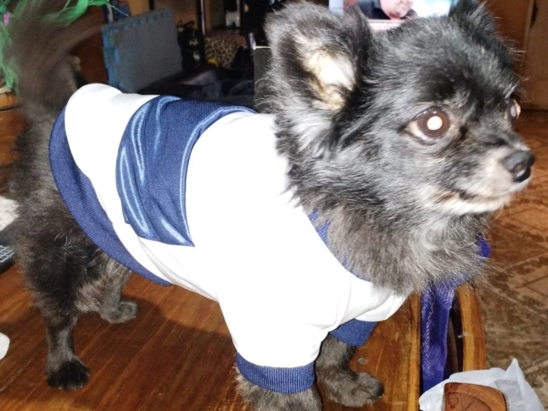 A través de su cuenta de Twitter, el usuario @BushidoMusashi escribió: “Le compré casaca, meta vino droga y aguante el Titirri”, junto a tres fotos de su perro con la camiseta del Lobo.