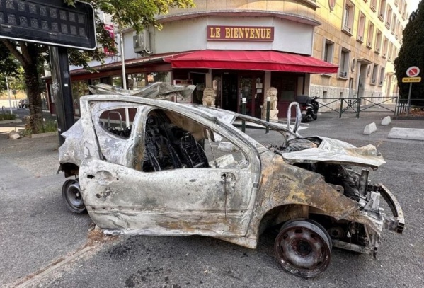 La noche estuvo marcada por disturbios en la región de París, sobre todo en Nanterre, al oeste de la capital, donde Nahel fue asesinado.