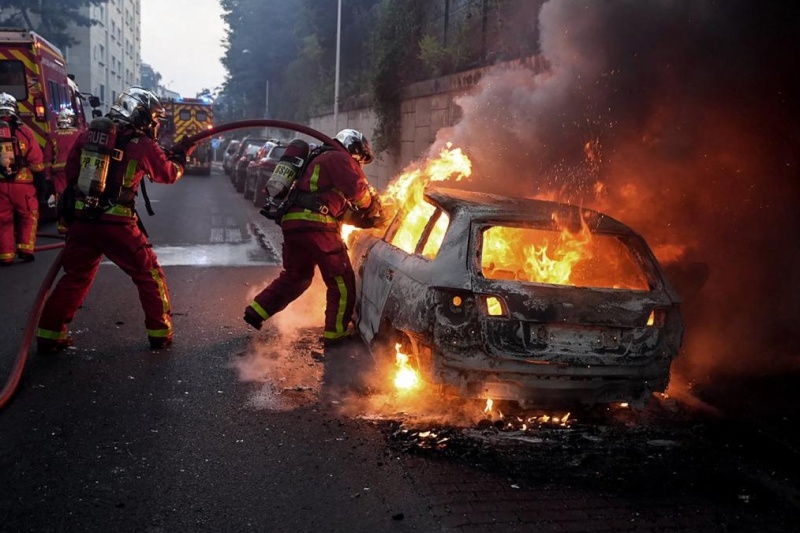La noche estuvo marcada por disturbios en la región de París, sobre todo en Nanterre, al oeste de la capital, donde Nahel fue asesinado.