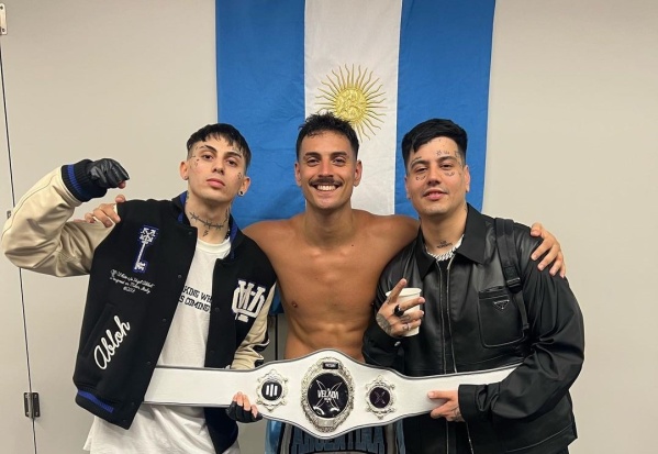 Momo, Khea, Joaco Lopez, entre otros, alentaban a Coscu con todas sus fuerzas. Al terminar la pelea, saltaron inmediatamente al cuadrilátero con gritos y una emoción inmensa.