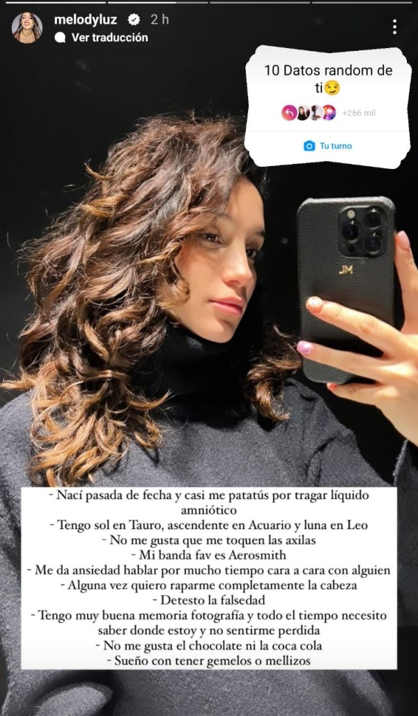 A poquito tiempo de que se conviertan en padres junto a Alex Caniggia, Melody Luz compartió “datos random” sobre ella y sorprendió a todos.