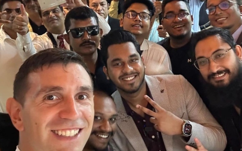 El arquero del seleccionado argentino Emiliano "Dibu" Martínez provocó un gran entusiasmo en los fanáticos de Bangladesh, país que visitó este lunes para realizar actos de promoción y protocolo en su condición de campeón del pasado Mundial de Qatar.
