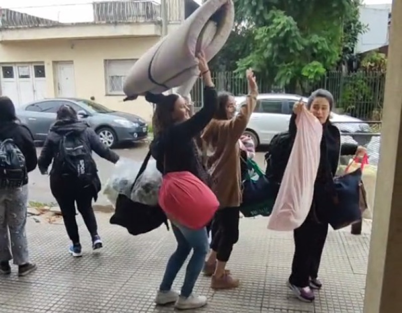 Las chicas fueron llegando a la casa de una ellas con colchones en la cabeza y todo tipo de comidas que iban desde el chocolate hasta llegar a las bebidas alcohólicas.