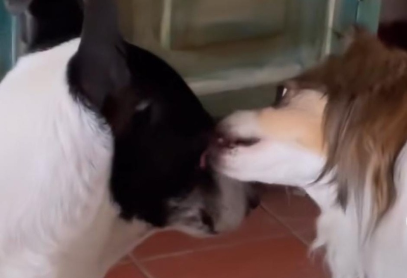 “Olivia sufre ataques de pánico cuando llueve y así es como Pupi logra calmarla”, puso a modo de descripción la usuaria @antonellalanzasga, mientras se ve en el video como una de las mascotas comienza a lamerle la cara a la otra, hasta tranquilizarla.