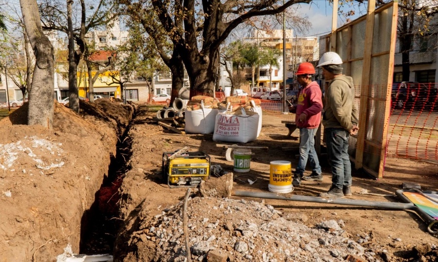 La Municipalidad de La Plata lleva adelante obras hidráulicas en Plaza España para facilitar el escurrimiento del agua en días de lluvia. Las tareas contemplan el reemplazo de caños y la construcción de nuevos badenes.