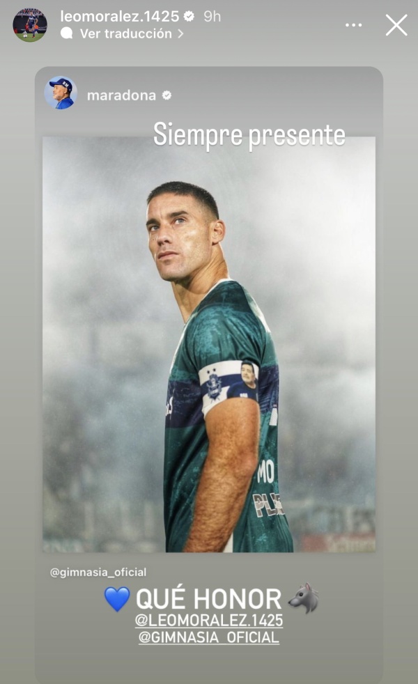 "Qué honor", fue la frase que utilizaron para agradecerle a Leonardo Morales, por el brazalete de capitán que lució ayer en Tucumán. La publicación, acompañada por la imagen del "Yacaré", muestra al defensor posando orgulloso con su cinta, la cual tiene la imagen de Maradona con los colores del "Lobo". La respuesta del entrerriano, obviamente, no tardó en llegar: "Siempre presente", dijo el nacido en Villa Urquiza.