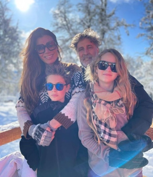 Por estas horas, la propia conductora despejó dudas y publicó una foto en sus redes, feliz y sonriente junto a su esposo y sus hijos disfrutando de los espectaculares paisajes y la nieve que le ofrece la Patagonia argentina.