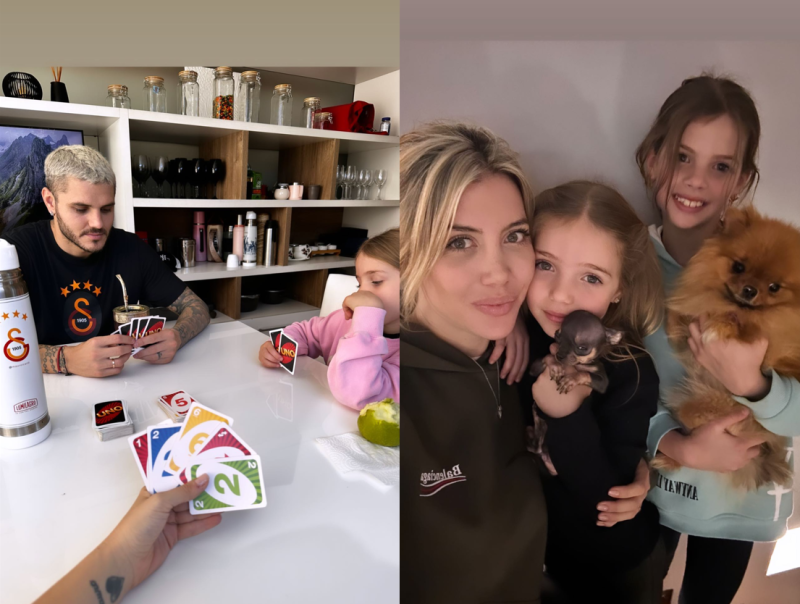 Primero compartió una postal junto a las niñas y sus mascotas perrunas y luego unos videos donde se lo ve a Mauro Icardi en una plaza jugando con ellas.