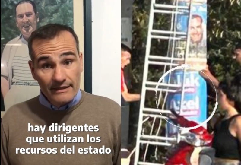 En sus redes sociales, el actual concejal mostró un video donde se observa como despegan su cartel para colocar los de su contendiente.