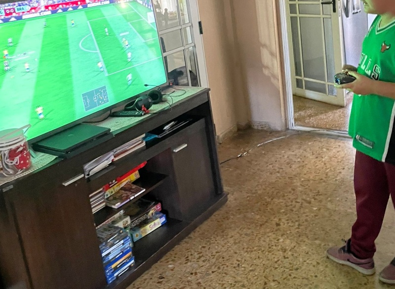Resulta que el chico se puso a jugar a un videojuego de futbol en su Play Station y la joven se quedó dormida en el sillón.