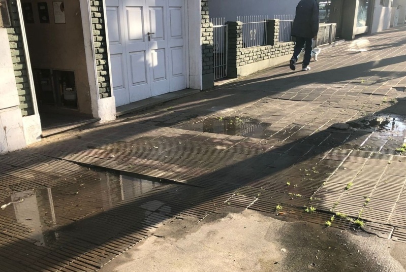 Frentistas de la zona de 38 entre 2 y 3 exigen que arreglen una pérdida de agua que está ocasionando un laguna hace mes.