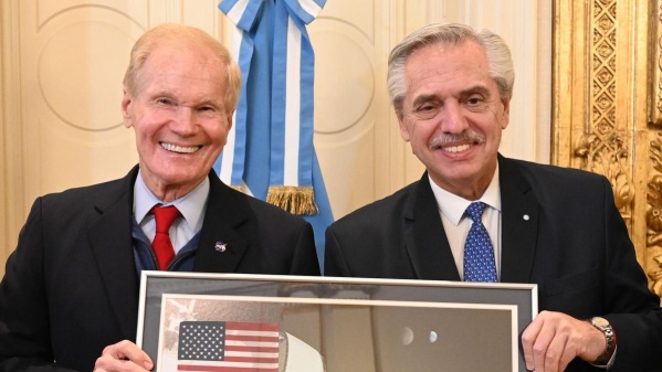El presidente de la NASA, Bill Nelson, visitó la Argentina con el fin de sumar al país a los Acuerdos Artemisa de cooperación espacial internacional. Durante una reunión realizada este jueves con el presidente Alberto Fernández, Nelson y el ministro de Ciencia, Tecnología e Innovación (MINCyT), Daniel Filmus, firmaron un acuerdo de cooperación entre la NASA y la Comisión Nacional de Actividades Espaciales (CONAE) para la exploración civil y el uso pacífico de la Luna, Marte y otros objetos astronómicos.