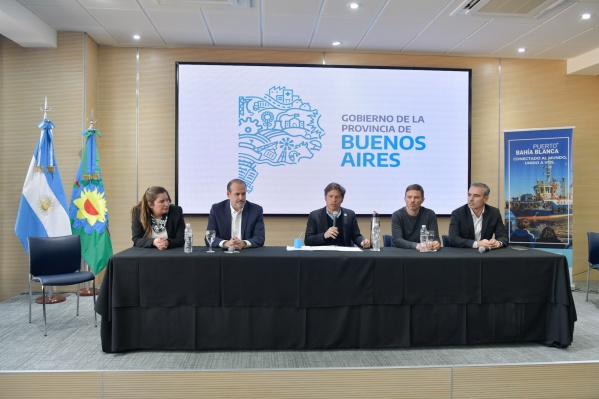 El gobernador de la provincia de Buenos Aires, Axel Kicillof, visitó este martes el puerto de Bahía Blanca, donde se reunió con empresarios y recorrió los avances de obras y las instalaciones de distintas empresas que componen el complejo. Fue junto al ministro de Producción, Ciencia e Innovación Tecnológica, Augusto Costa; el presidente del Consorcio del Puerto local, Federico Susbielles; y su par de Coronel Rosales, Rodrigo Aristimuño.