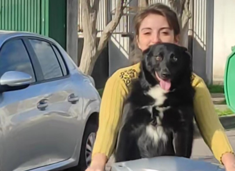 En el clip que compartió a través de la red social Tik Tok, la joven para la moto, le hace un gesto a su mascota para que se siente detrás de ella y sin pensarlo su perra se sube y comienza a dar unas vueltas por la cuadra. Pero no solo eso, sino que también disfruta de andar en monopatín también. ¡Una genia!