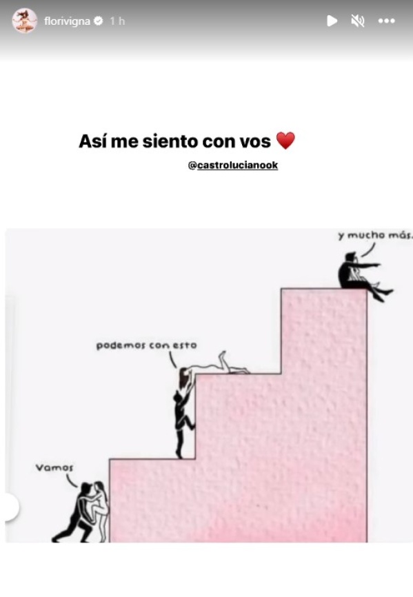 “Vamos, podemos con esto y mucho más”, describía la foto a modo de inspiración y cerrando un romántico gesto de Flor Vigna para Luciano Castro.