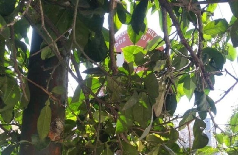 Frentistas y conductores que circulan diariamente por la calle 47 entre 4 y 5 expusieron su reclamo ante las ramas de un árbol que cubren y "no dejan ver" el cartel de Estacionamiento Medido.