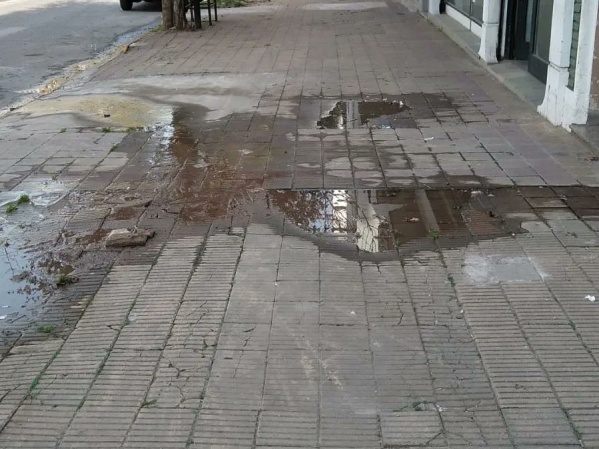 La pérdida de agua ya desprendió varias baldosas de su lugar, obstaculizando el paso de los peatones.
