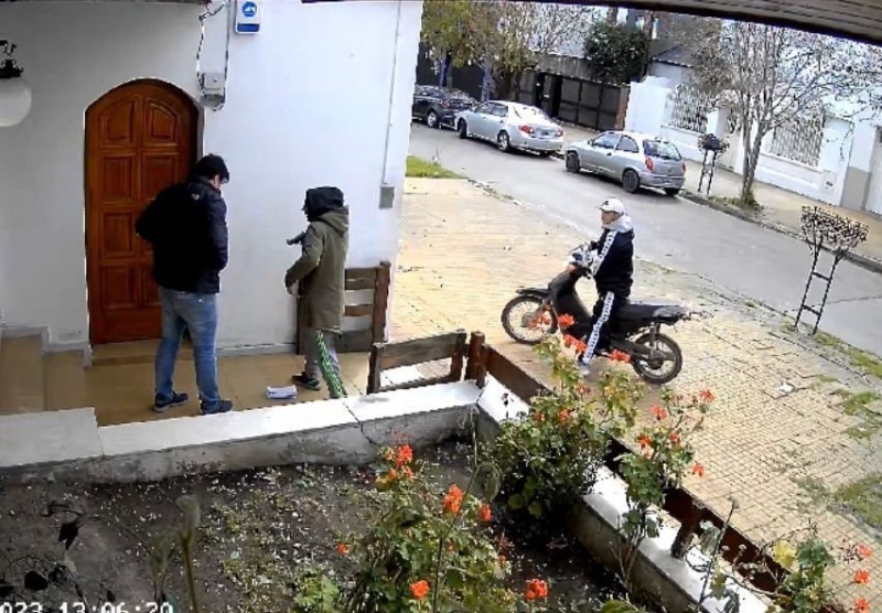 En este sentido, se pudo observar a una persona caminando mientras que los dos ladrones llegaron por detrás en una motocicleta.