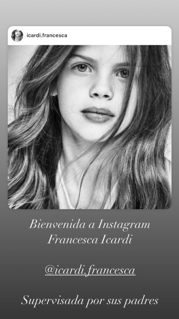 Lo cierto es que tanto como Valentino, y Benedicto López tienen sus propias redes sociales. Y ahora Francesca Icardi tendrá la suya. Tras la bienvenida, Wanda aclaró: "Supervisada por sus padres". Y la primer foto que eligieron subir es una imagen de su pequeña hija, con su rostro en primer plano, en blanco y negro.