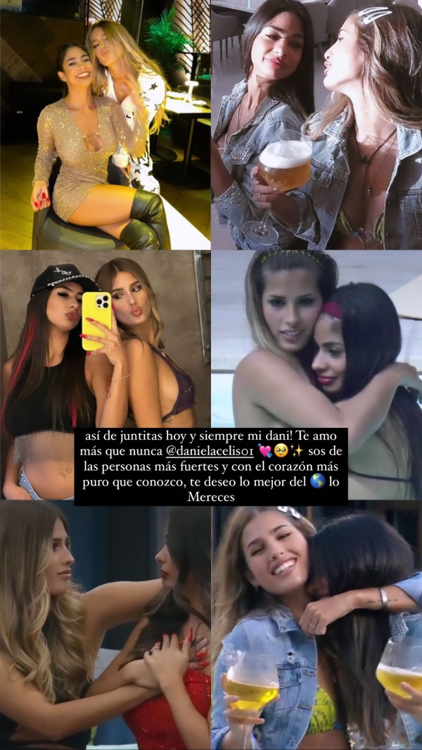 Con un collage de seis fotos, la joven actriz escribió: “Así de juntitas hoy y siempre mi Dani! Te amo más que nunca. Sos de las personas más fuertes y con el corazón más puro que conozco, te deseo lo mejor del mundo, lo mereces”.