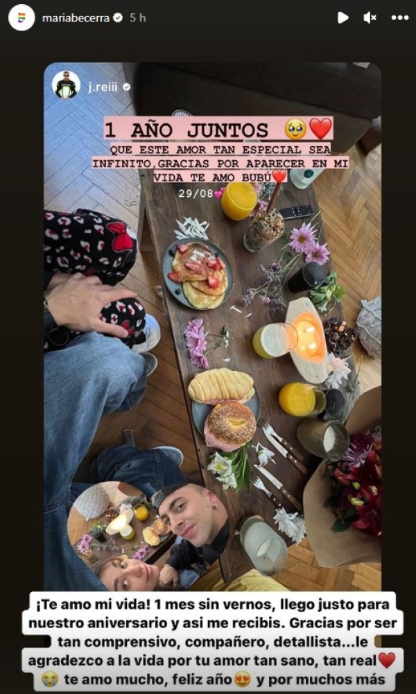 J Rei escribió: "Un año juntos, que este amor tan especial sea infinito. Gracias por aparecer en mi vida. Te amo Bubu".
