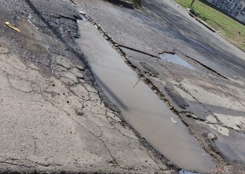 Vecinos de la zona de 146 y 58 expusieron su malestar ante el estado de una calle que se encuentra con un enorme pozo lleno de agua.