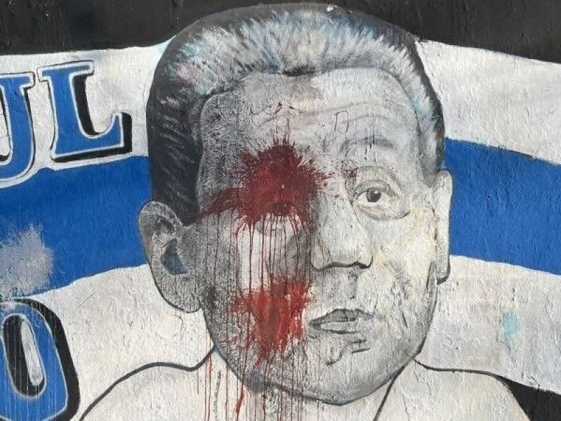 Por estas horas, murales albiazules fueron vandalizados en la zona de Parque Castelli, sobre la avenida 66 y 26. Las representaciones tienen la figura de dos reconocidos ídolos de Gimnasia, Timoteo Griguol y el doctor René Favaloro.