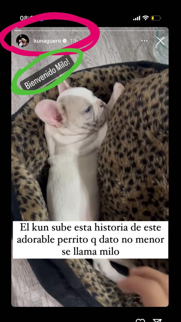 “El Kun sube esta historia de este adorable perrito que, dato no menor, se llama Milo. Hay una chica, hermana de un jugador de fútbol, que sube la mismísima historia con un perrito que se llama Milo, que duerme sobre una cama animal print”, aseguró Juariu, compartiendo el perfil de “Maqui”.