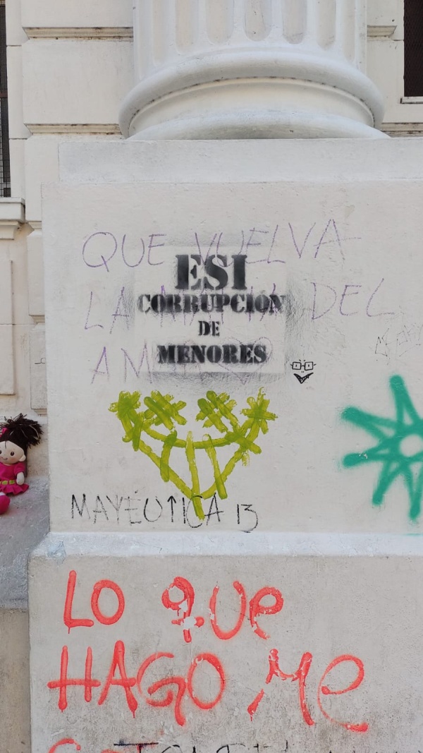 "ESI es corrupción de menores" o "ESI es pedofilia" son algunas de las pintadas que aparecieron en los frentes del Normal 1, el Normal 3, la Escuela Técnica Nº 1, entre varias más.