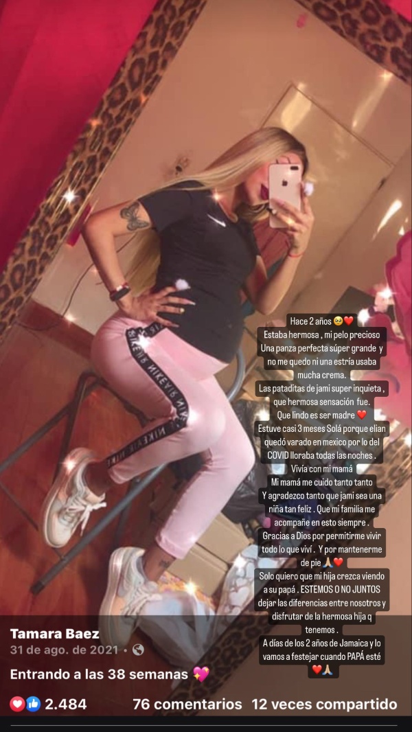 Tamara Báez, ex pareja de L-Gante y madre de la hija del cantante, llamada Jamaica compartió en las últimas horas una emotiva foto de su panza de embarazada que le recordó una publicación de Facebook.