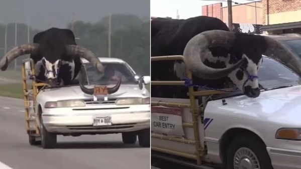 Una situación insólita se vivió en la ciudad de Norfolf, en el estado de Nebraska: un hombre circuló por la carretera 275 con un toro, que pesaba casi media tonelada, como copiloto.