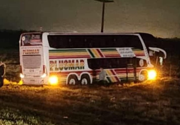 La violencia del impacto provocó que el micro se desviara de la ruta y termine detenido en la zona parquizada aledaña al camino. Por su parte, el utilitario cruzó y quedó sobre la banquina de la mano contraria.
