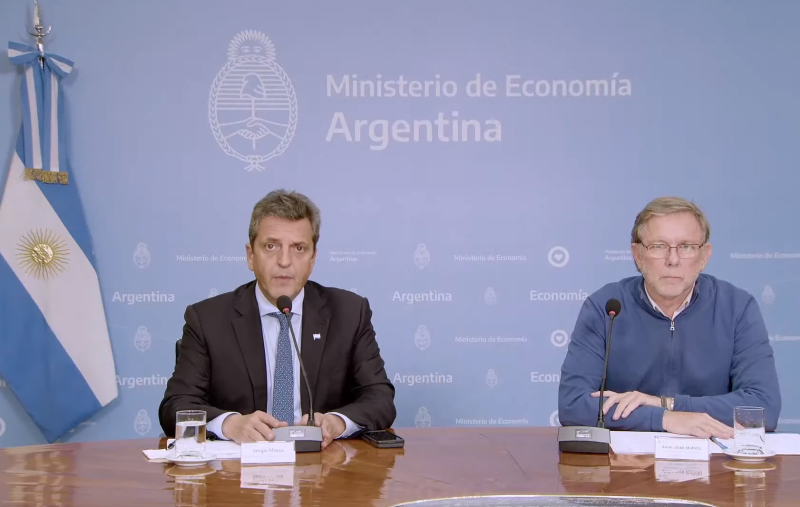 El ministro de Economía y candidato presidencial de Unión por la Patria, Sergio Massa, junto al secretario de Agricultura, Ganadería y Pesca, Juan José Bahillo, presentaron medidas de alivio para las economías regionales.