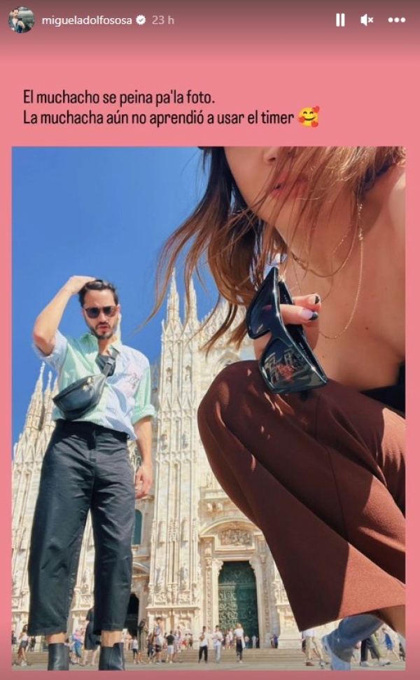 Con Abril se conocieron en el mes de mayo y blanquearon su romance a través de sus redes sociales, en un viaje a Berlín. Ahora, después de muchos meses de noviazgo y con anillo de compromiso de por medio, compartieron unas románticas postales por Italia. "Milán, la capital de la moda y sándwich con mucho aceite", escribió Cid en la imagen junto a Sosa.
