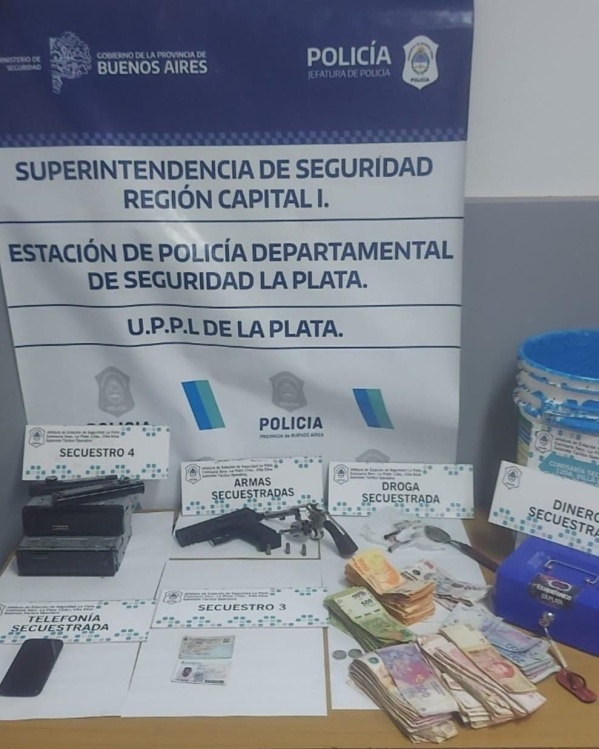 Los uniformados realizaron una revisión en el mismo donde encontraron una réplica de arma de fuego 9MM, un revólver calibre 32 (con tres municiones en su tambor), envoltorios con clorhidrato de cocaína y una suma de 180.000 pesos.