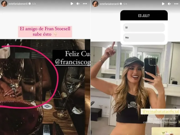 Uno de estos indicios surgió cuando Estefi Berardi compartió una imagen en sus historias de Instagram, la cual había sido publicada por un amigo de Fran Stoessel. En esta imagen, se pueden ver las manos de una mujer y, al hacer zoom, se notan las uñas esculpidas de la persona en cuestión.