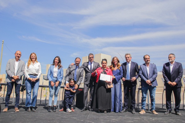 La ministra y candidata a diputada nacional Victoria Tolosa Paz participó hoy de una extensa jornada de trabajo en el norte del país, donde encabezó con el ministro de economía y candidato a presidente por Unión por la Patria, Sergio Massa, el jefe de gabinete Agustín Rossi, el Gobernador Ricardo Quintela y el ministro de Desarrollo Territorial y Hábitat de la Nación, Santiago Maggiotti, el anuncio del Registro Único de Solicitantes de Lotes (RUS), y la entrega de 502 viviendas en La Rioja.